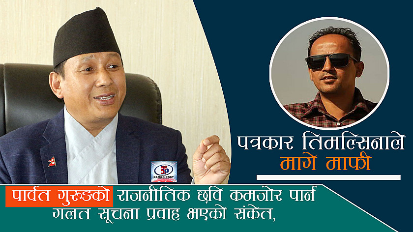 दोलखा । नेकपा (एमाले)का नेता पार्वत गुरुङसँग जोडिएको विवादबारे फेसबुकमा धारणा राखेका पत्रकार प्रकाश तिमल्सिनाले प्रष्टिकरणसहित माफी मागेका छन् ।