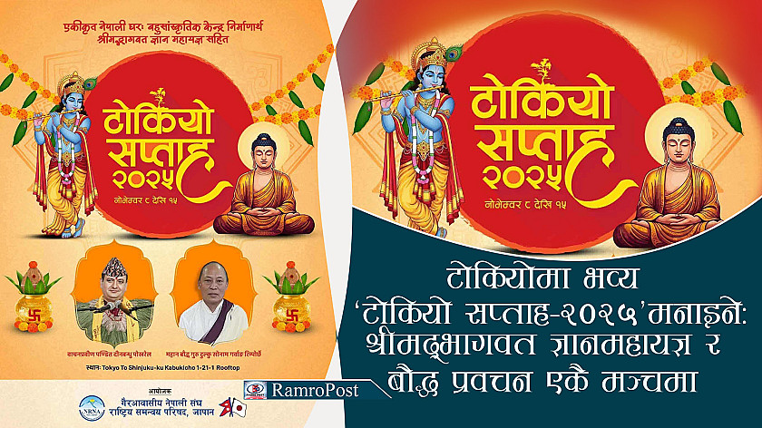 ‘टोकियो सप्ताह–२०२५’ हुँदै : श्रीमद्भागवत ज्ञानमहायज्ञ र बौद्ध प्रवचन एकै मञ्चमा